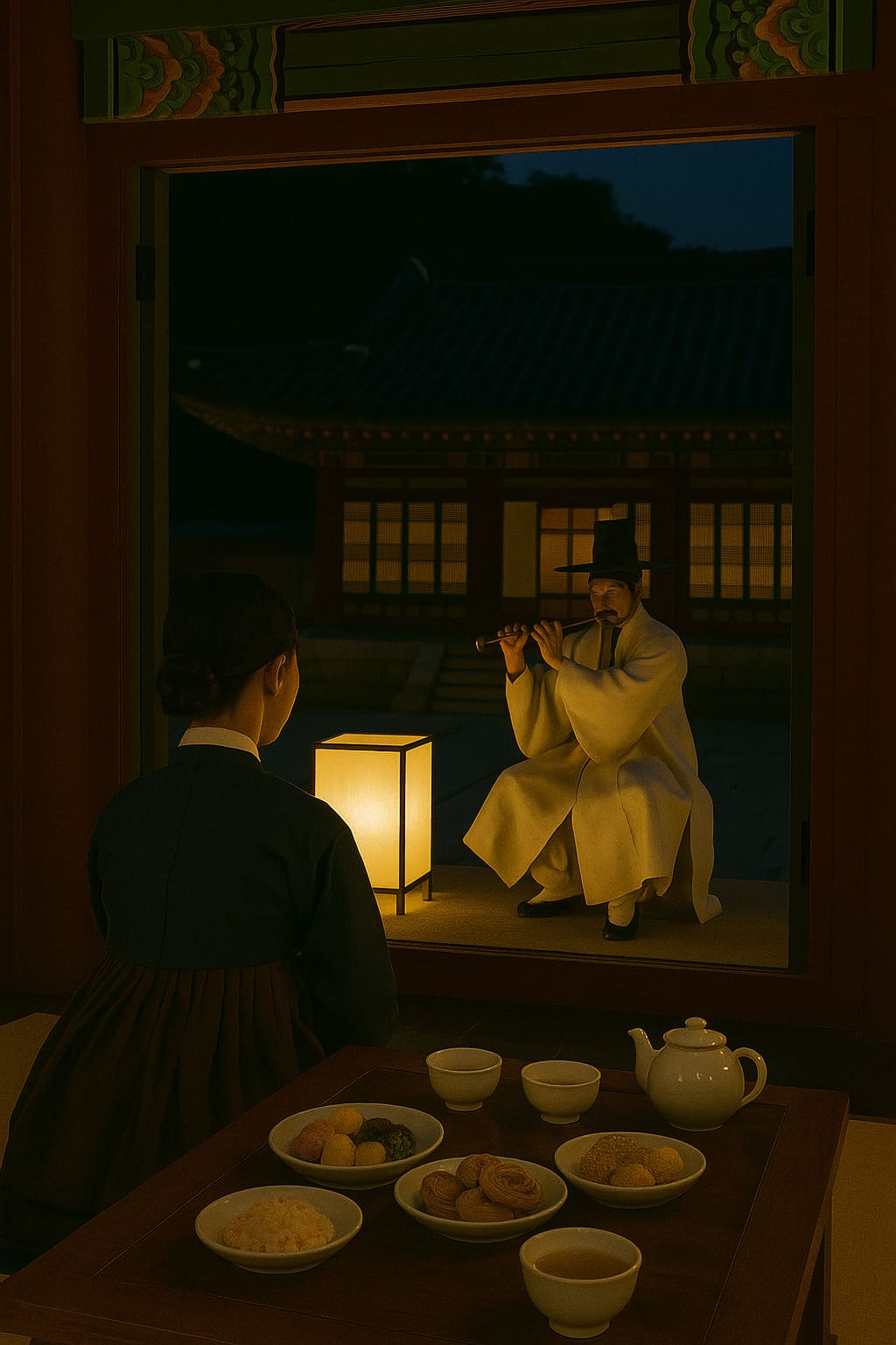 - 전통 다과와 고즈넉한 실내 공연