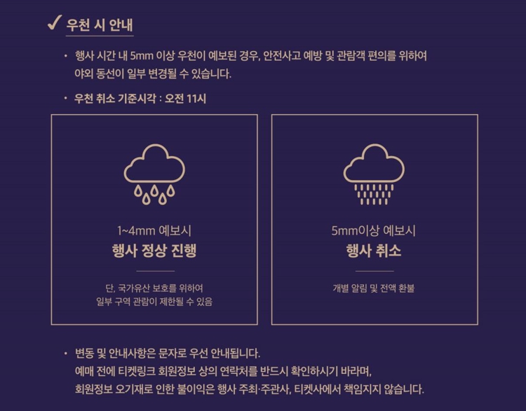 - 환불 방식: 티켓링크 자동 환불 (별도 신청 불필요)
