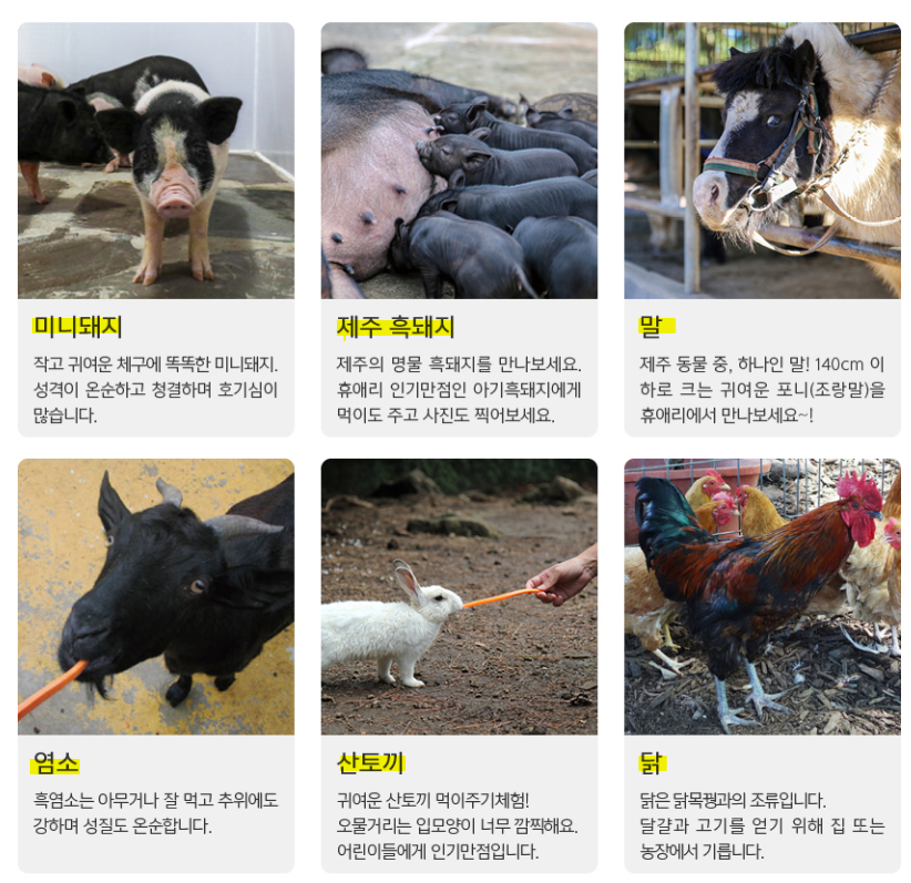 - 🐰 동물 먹이 주기 체험: 산토끼, 흑돼지, 말, 염소 등에게 직접 먹이 주기