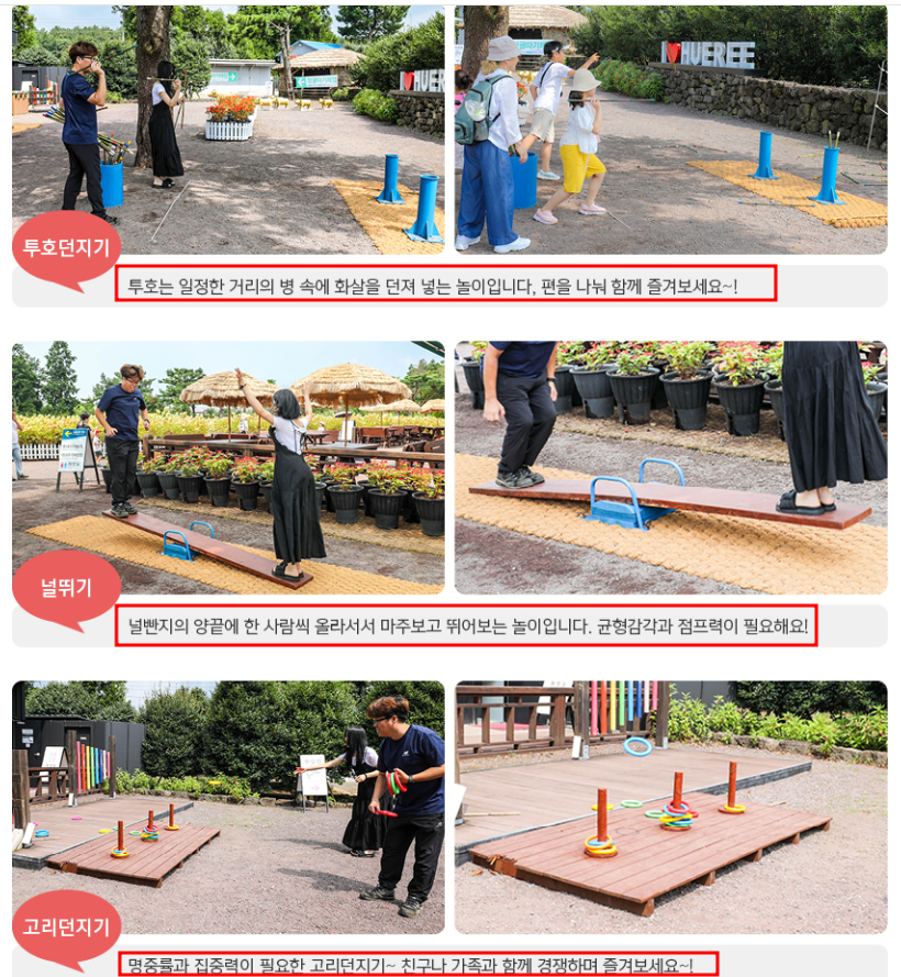 - 🧙♀️ 제주 전통놀이 체험: 널뛰기, 투호, 고리 던지기 등